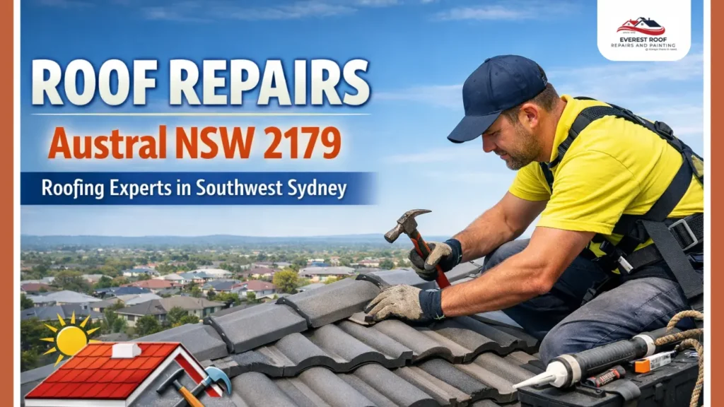 Everest Roof Repairs & Painting offers expert roof repair services in Austral, NSW 2179, and within a 25 km radius of Leppington, Oran Park, Camden, Gregory Hills, Liverpool, Cecil Hills, Middleton Grange, Hoxton Park, Prestons, Ingleburn, and Campbelltown. As a locally based firm, we are well aware of the effects of Western Sydney’s weather patterns on roofing systems, which differ significantly from those in coastal Sydney.